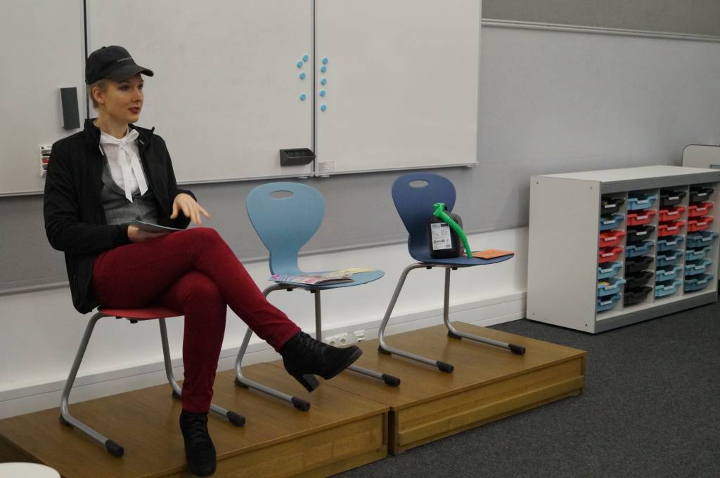 Ebenfalls als unterstützend für einen Transfer zwischen zwei Perspektiven erwies sich der Einsatz szenischer Darstellungen. So werden auf nachfolgender Fotografie etwa Ergebnisse aus einer Studie anhand von verschiedenen Charakteren verbildlicht. Den Studierenden wird der Zugang zu den theoretischen Hintergründen ermöglicht, indem sie zunächst die Szene mit unterschiedlichen Beobachtungsaufträgen analysieren und die gewonnenen Ergebnisse anschließend in einen fachlichen Kontext einbetten.